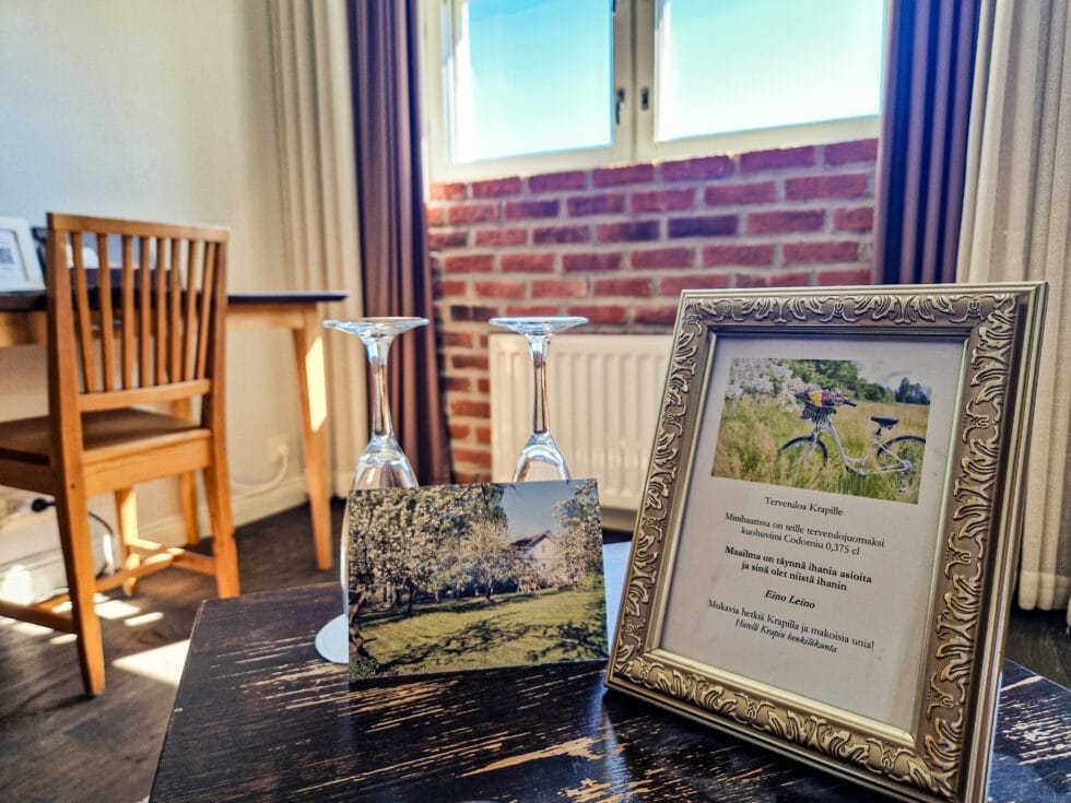 Toinen asia, johon olemme pyrkineet keskittymään on, että meillä on kalenterissa aina jotain mitä odottaa! Olemme nauttineet aina todella paljon hyvissä ravintoloissa käymisestä ja parasta mitä tiedämme on istua tunti tolkulla herkullisen ruuan ja hyvän viinin äärellä. Nostimme tämän vielä seuraavalle tasolle viimeksi, kun kirjoitin parisuhteen hoidosta blogiin. Vierailimme silloin nimittäin Krapilla syömässä ja samassa fiilistelimme häitämme, jotka tanssittiin siellä viitisen vuotta sitten! Miten ihanaa oli sukeltaa rakkauskuplaan ja jatkaa iltaa vielä Krapin Pajalle kuuntelemaan Ida Paulia & Kalle Lindtrothia. Ilta oli täydellinen ja siitä voit lukaista tästä. Ainoa asia, joka jäi silloin harmittamaan oli, että ilta loppui liian pian ja piti lähteä kotiin. Silloin syntyi idea järjestää pidemmät treffit Krapille ja nauttia upeasta miljööstä, ruuasta ja Krapin mahdollisuuksista pidempään. Nyt oli aika laittaa toive toteen! Varoitan jo etukäteen, että tämä konsepti oli aivan ihana ja suosittelen kopioimaan koko reissun kaavan, niin saat täydelliset deitit kumppanisi kanssa!
