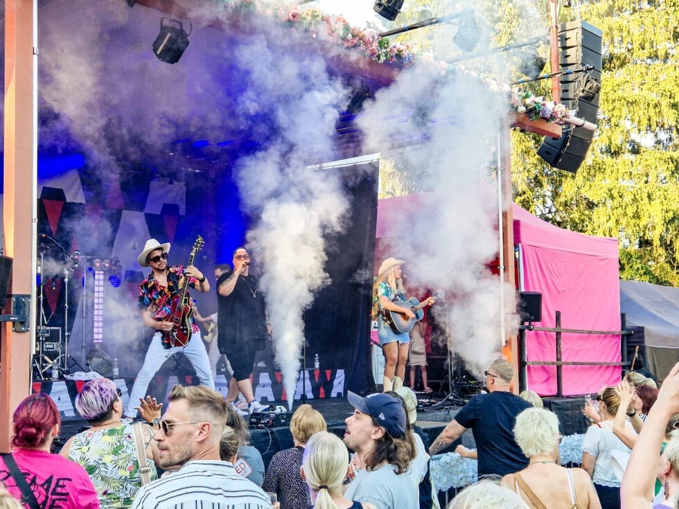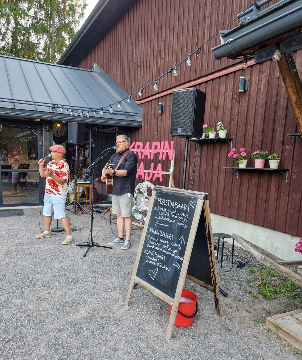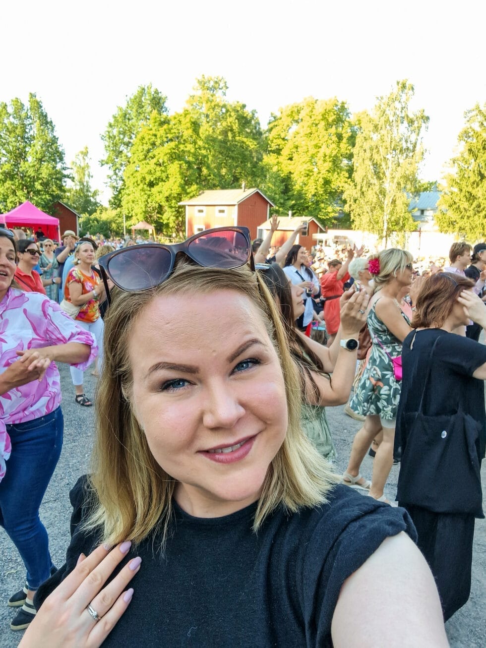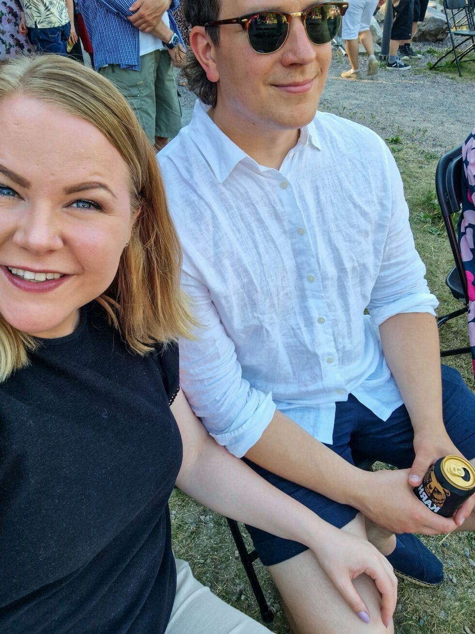Arttu Wiskari oli ihan super! Oli hauskaa, että melkein jokainen biisi oli jonkun asteinen radiohitti, joten jopa minä tiesin melkein kaikkien laulujen sanat ja musiikki vei mukanaan! Oli ihan mieletön arjen irtiotto istua upeassa säässä kauniissa kesäillassa käsikädessä oman aviomiehen kanssa ilman, että olisi kiire yhtään mihinkään. Oli kertakaikkiaan ihanaa! Keikka loppui ihan liian äkkiä, sillä aika meni siivillä! Onneksi livemusiikkia pystyi kuunnella vielä Pajan edessä, kun Teemu ja Mikko Duo vetivät omat settinsä vielä Artun keikan jälkeenkin. Oli ihana istua nauttimassa tunnelmasta ja seurasta ihan rauhassa. Oltiin ilmeisesti söpö näky, kun ohitsemme kävellyt nainen sanoi yhtäkkiä, että saako ottaa teistä kuvan meille muistoksi. Sehän meille sopi!