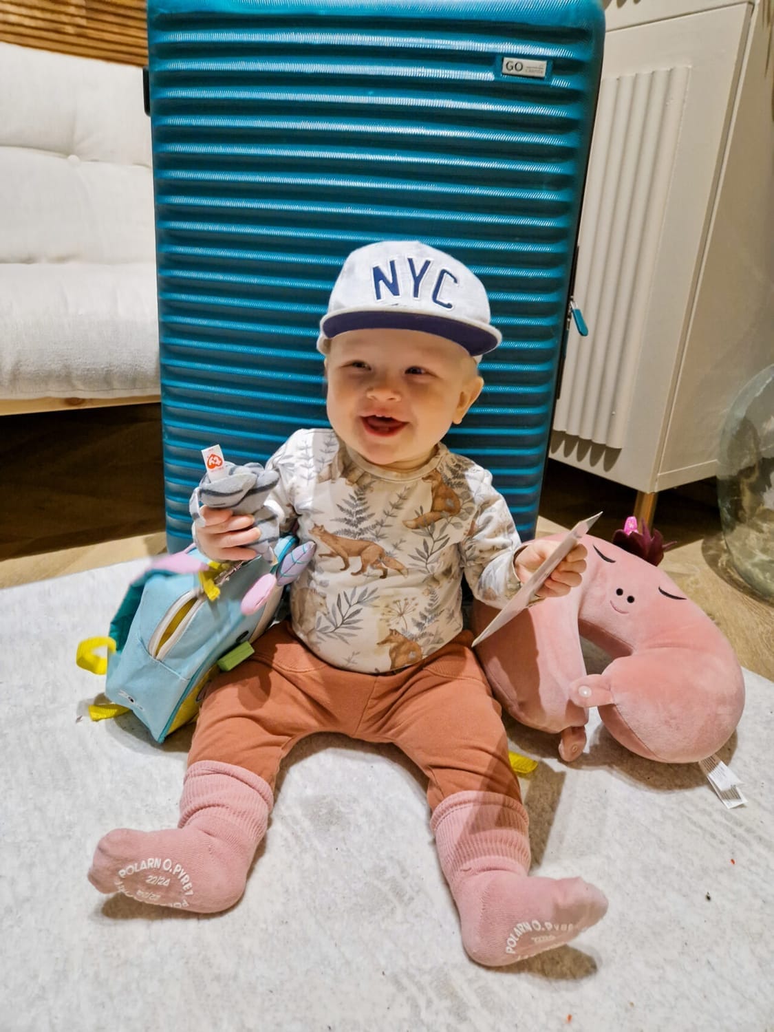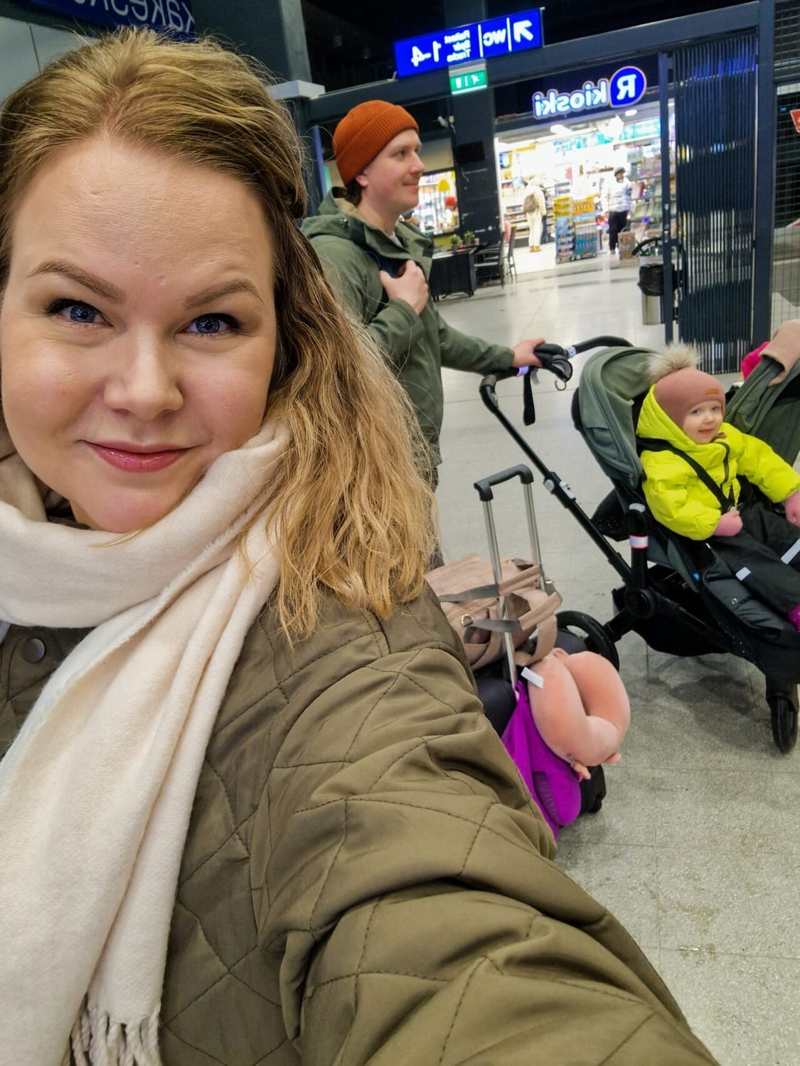 Tässä muutamia ideoita! Ja huomaa, että kaikki pillimehut ja vesipullot sekä ruuat lapsille SAA viedä koneeseen turvatarkastuksen läpi eli ne kannattaa hankkia jo hyvissä ajoin eikä säästää ostosten tekoa kentälle. Lisäksi yksi vinkki, joka meillä oli mukana, mutta mitä emme tällä kertaa käyttäneet, on valjaat lapselle. Kaupunki ja lentokenttä ovat todella vauhdikkaita paikkoja, joissa erittäin nopea kaksivuotias voi kadota helposti. Me kuljimme pääasiassa rattailla näissä tilanteissa, niin emme tarvinneet niitä, mutta ne on hyvä jemmata mukaan, jos tarve tulee.