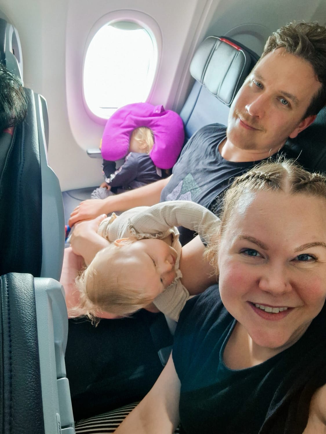Voi vitsit, mitä kaikkea sitä pitääkään ottaa huomioon lasten kanssa reissatessa! Aiemmin olimme matkustelleet lähinnä kahdestaan, jolloin riitti, että huolehdimme itsemme laukkuineen lentokentälle ja yleensä tutkimme vasta silloin, että mitä aiomme tehdä kohteessa ja millä liikumme paikasta toiseen. Nyt tilanne oli eri, kun matkassa oli kuusi aikuista ja kaksi lasta sekä sen seitsemäätoista sorttia olevat matkatavarat alkaen niistä tuplarattaista. Isoin huoleni oli siirtyminen lentokentiltä kohteisiin, sillä emme mitenkään voineet raahata mukana lastenistuimia. Kantamista oli muutenkin vaikka ja kuinka! Vinkkinä kaikille, että vauvalle olisi saanut ottaa Finnairin koneeseen turvaistuimen. Kannattaa lukaista aiheesta tarkemmin heidän sivuiltaan. Tässä vaiheessa on myös hyvä vinkata vauvankoppamahdollisuudesta, joka on tarjolla ainakin joissain Finnairin koneissa. Nämä paikat olivat meidän lennoilla varattu jo muille, mutta suosittelen ehdottomasti tiedustelemaan tällaista paikkaa, jos matkustat sylilapsen kanssa. Soitin ja kysyin paikoista hyvissä ajoin ennen lentoa, mutta ne olivat jo menneet. Olin kateudesta vihreä, kun katsoin lennollamme perhettä, joka istui tuollaisella paikalla. Siinä istutaan väliseinän takana eturivissä ja seinään laitetaan kiinni vaunukoppaa muistuttava koppa vauvalle. Miten kivasti vauvan sai laskettua siihen nukkumaan ja itse sai lepuuttaa käsiä. Tämä olisi helpottanut lentomatkaa, sillä 9h on aika pitkä aika istua sylikkäin pienessä tilassa ja varsinkin nukkuessa kädet puutuivat. Omakin uni olisi varmasti ollut parempaa, jos olisi tiennyt, että vauva on turvallisesti kopassa nukkumassa eikä retkottaisi sylissä miten sattuu. Se on tietenkin eri asia, että olisiko hän edes suostunut simahtamaan koppaan!