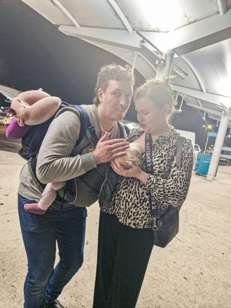 1. Etukäteen tilattu kuljetus, johon saa myös istuimet lapsille. Hinta: 300-600€ suunta meidän porukalle eli noin 100-200€/hlö edestakaisin.