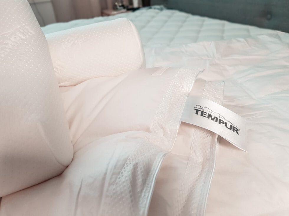 Iso juttu oman unenlaadun parantumisessa uuden sängyn lisäksi ovat uusitut tyynyt ja peitto! Testailimme erilaisia Tempurin tyynyjä Vepsäläisen myymälässä samalla, kun kokeilimme sänkyjä. Oikealla tyynyvalinnalla on iso merkitys ja se takaa hyvän ja ergonomisen nukkumisasennon koko yön ajan. Olen maailman huonoin selällä nukkuja, koska siinä minua alkaa aina särkeä niskaa. Ihastuin liikkeessä ikihyviksi Tempurin Millennium-tyynyyn! Siinä on keskellä matalampi kohta ja kyljelle kääntyessä korkeampi, jotta se tukee kehoa oikein eri asennoissa. Tuntuu uskomattomalta, sillä saatan herätä samasta asennosta, johon nukahdin ja saatan nukkua koko yön selälläni. Tällaista ihmettä ei ole koskaan aiemmin tapahtunut! Olin haaveillut pitkään myös isosta perhepeitosta ja sängyn päivittämisen yhteydessä päätimme päivittää myös peiton. Peitoksi valikoitui Tempurin Premium Light-peitto. Se on ihana! Kevyt käsitellä, juuri oikean lämpöinen nukkua! Sen alla ei tule kuuma eikä kylmä!