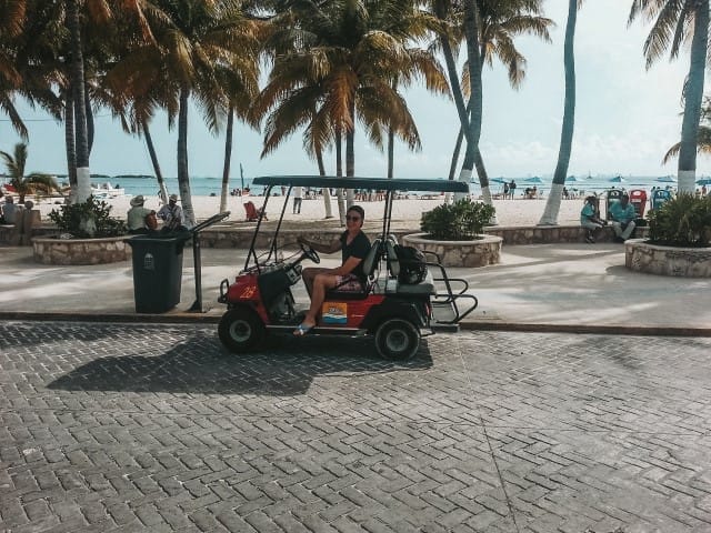 Cancunista suuntaamme yhdeksi päiväksi omatoimimatkalle Meksikon paratiisisaarelle Isla Mujerekselle. Cancunista on saarelle 13 kilometriä ja sinne kulkee useita kataramaaneja. Saari on pieni, vain noin seitsemän kilometriä pitkä ja siellä ajellaan golf-kärryillä! Mekin vuokrasimme oman ja tutustuimme saaren nähtävyyksiin! Todella kaunis paikka ja ihanan rauhallista. Sieltä löytyy myös Dolphin Discovery-keskus, jossa voisi viettää päivän delfiinien parissa ja uida merialtaassa niiden kanssa. Hinnat olivat jäätävät ja onneksi minä myös pelkään niitä niin, ettei uintiretki jättikalojen (tai -nisäkkäiden) kanssa houkuttanut. Matkalla vierailimme kilpikonnien suojelukeskuksessa.