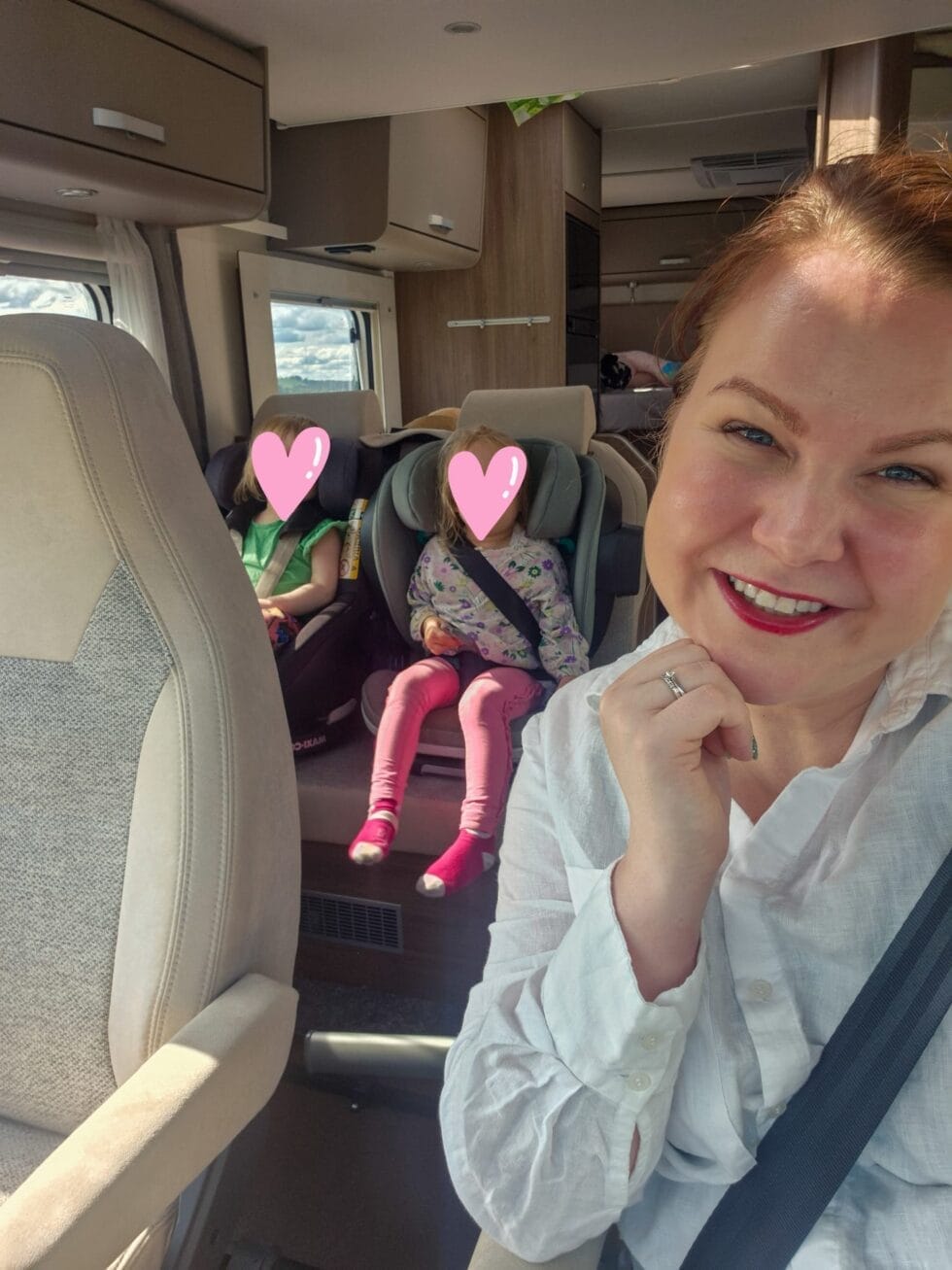 Sitten se oli menoa! Ensimmäiset eväät syötiin ennen kuin autolla oli liikuttu vielä kilometriäkään, kun lapsilla oli välipalan nälkä jo päiväkodin pihassa. He olivat niin innoissaan siitä, että autossa on oma jääkaappi täynnä eväitä, että pelkkä innostus taisi saada jo vatsat kurnimaan. Olin yrittänyt jo aiemmin selittää, että asuntoautossa nukutaan ja sieltä löytyy jopa vessa. En tiedä, millaiseksi kolmenvuotiaan mielikuvitus oli auton kuvitellut, mutta silmät alkoivat loistaa, kun se ilmestyi päiväkodin pihaan. Rahan säästölaskuri lähti käyntiin jo ennen kuin olimme päässeet kunnolla matkaan – ensimmäiset välipalat ja pissatauot hoidettiin nimittäin suoraan auton takapenkiltä, eikä tarvinnut pysähtyä heti ensimmäiselle huoltoasemalle.
