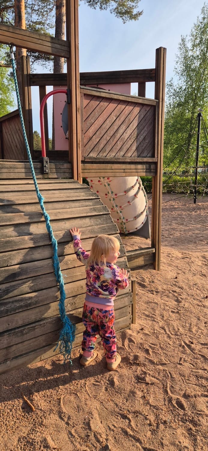 Matkamme sisälsi kaksi yötä Naantalissa, joten suuntasimme auton nokan kohti Naantalia. Ajatuksenamme oli lähinnä päästä matkaan ja ajaa johonkin saakka. Lapset olivat aika väsyneitä hoitopäivän jälkeen, joten hyvin nopeasti päädyimme siihen, että emme aja kovin pitkään. Emme ole ikinä aiemmin pystyttäneet leiriä asuntoautolla, joten arvelimme olevan hyvä, että kello ei ole yömyöhä, kun saavutamme leirintäalueen. Siispä varasimme matkalla Ikaalisista Toivolansaari Campingin idylliseltä leirintäalueelta paikan. Ensimmäinen virallinen pysähdys oli kuitenkin Ikaalisten Komppiin, johon ehdottomasti kannattaa pysähtyä pienten lasten kanssa! Suuret ilmaiset leikkipaikat viihdyttivät väsyneitä matkailijoita samalla, kun toinen meistä aikuisista kävi ruokakaupassa täyttämässä jääkaappia.