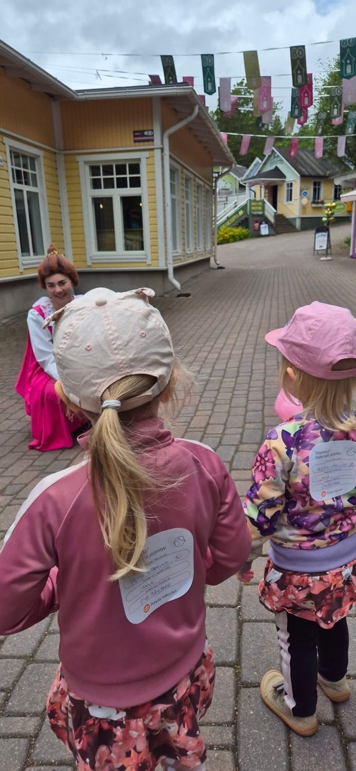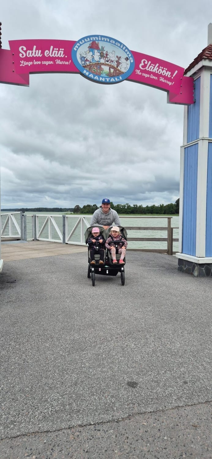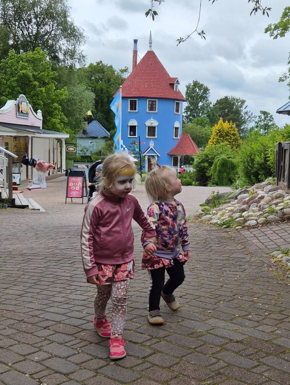 Ei ole ollut kovin lämmin ja aurinkoinen tämä kesä, eikä juhannusviikko tehnyt poikkeusta. Aiotulle Muumimaailman päivälle oli luvattu vettä ja kylmää keliä. Pohdimme pitkään, että mitä tehdään, lykätäänkö vierailua päivällä ja käytetään Muumimaailmaan tarkoitettu päivä jossain muualla. Asuntoautosta löytyi meille kaikille vaatteet kelille kuin kelille, joten päädyimme kuitenkin lähtemään Muumimaailmaan sade-ennustuksesta huolimatta ja se oli paras päätös ikinä! Ensinnäkin koko puisto oli lähes tyhjä, joten meidän ei tarvinnut jonottaa kertaakaan mihinkään. Lapset sai juoksennella vapaasti ympärillämme ilman, että tarvi koko ajan pelätä pienten katoavan ihmisjoukkoon, koska puistossa oli niin väljää. Vettä ripotteli pari kertaa eikä se haitannut meitä yhtään! Muumimaailma oli ihan hitti paikka pienten neitiemme kanssa ja haluan todella nostaa hattua kaikille hahmoja esittäneille. He todella paneutuivat rooleihinsa ja huomiovat lapsia upeasti!