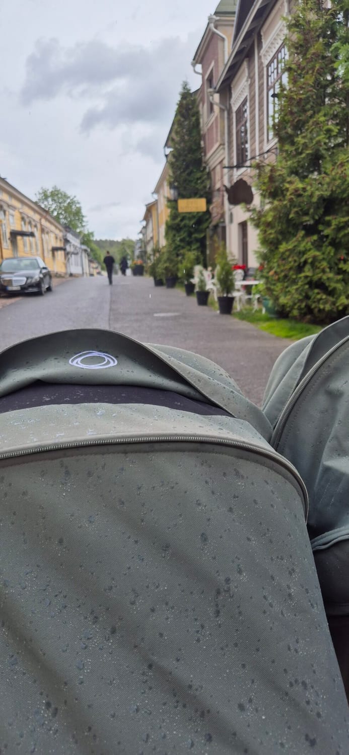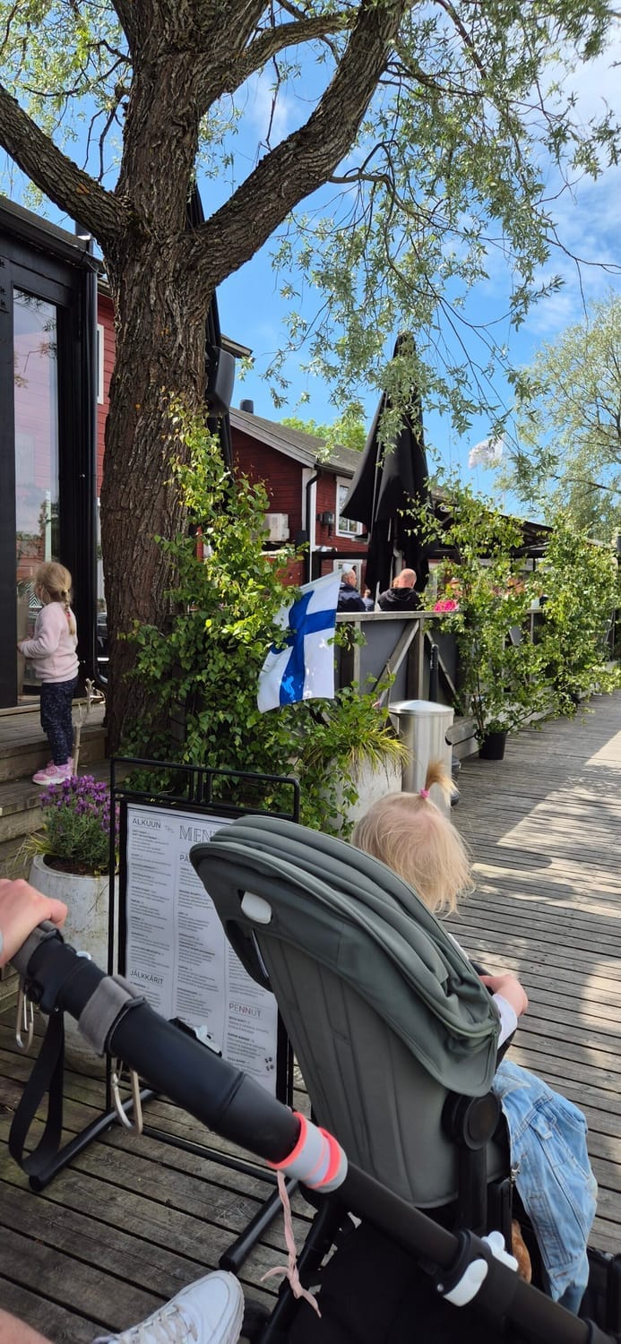 Muumimaailmapäivän jälkeen molemmat lapset nukahtivat rattaisiin kävellessämme poispäin puistosta. Kiertelimme hetken Juhan kanssa idyllistä Naantalia ja pysähdyimme päivälliselle tunnelmalliseen Ravintola Snickariin, joka sijaitsee kätevällä paikalla meren rannassa. Naantalista olisi varmasti löytynyt toinen toistaan parempia ruokapaikkoja, mutta päädyimme tähän lähinnä käytännön syistä, sillä pääsimme sinne sisälle tuplavaunujen kanssa suht kivuttomasti. Oli täydellistä luksusta syödä ravintolassa rauhassa ja jutella aikuisten asioita pikku mimmien vetäessä sikeitä. Normaalitilanteessa olisin stressannut, että he nukkuvat ruoka-ajan ohi, mutta nyt otin kaiken irti vapaasta hetkestä Juhan kanssa, sillä tiesin, että saan lapsille tarjoiltua hyvän päivällisen asuntoautossa ennen suuntaamista takaisin hotellille. Sanoinko jo, että ai vitsit, miten kätevää tämä asuntoautolla meno lasten kanssa!