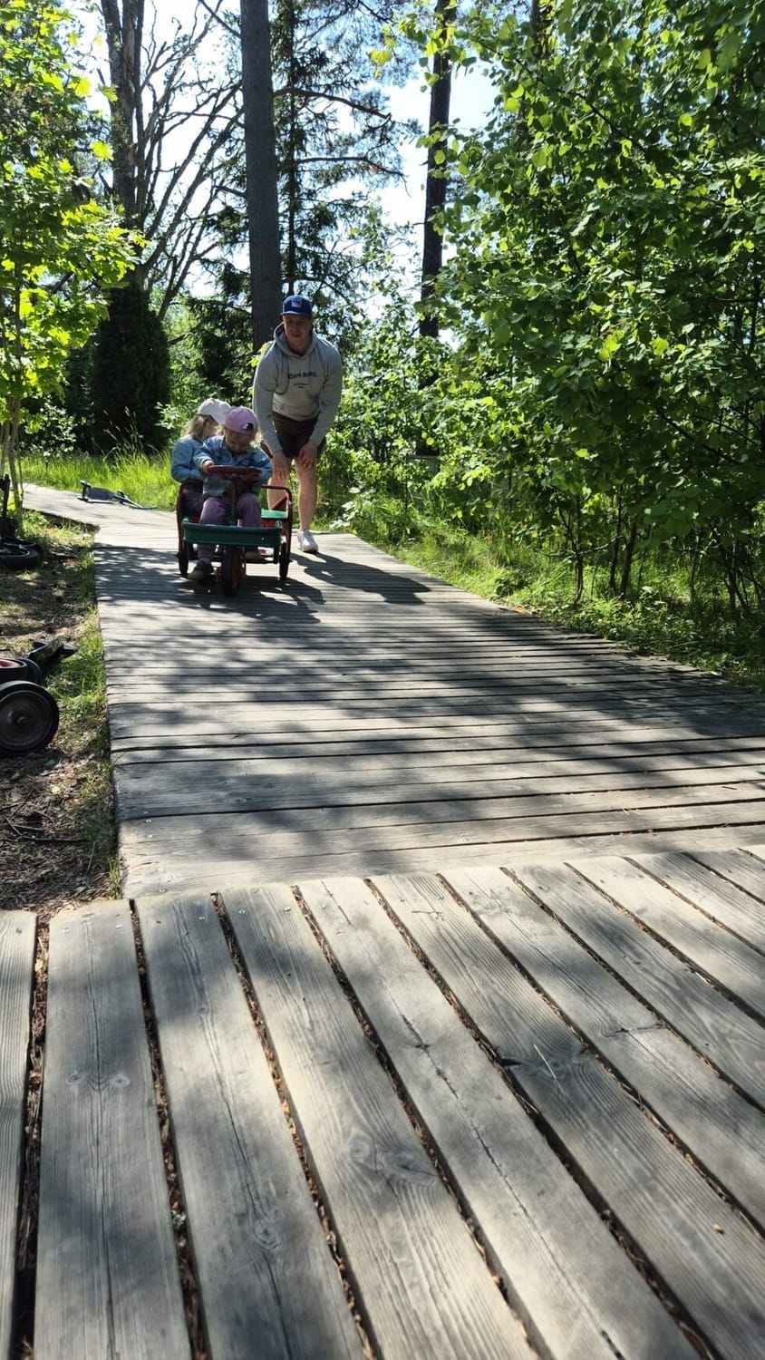 Seuraava pysähdyspaikka oli Porissa sijaitseva Pelle Hermannin puisto. Olemme käyneet siellä aiemminkin, mutta joka kerta se on vain yhtä kiva paikka lasten kanssa. Sijaintina Kirjurinluoto on tosi kaunis ja leikkipuistosta löytyy vaikka mitä! On isoille ja pienille sopivia juttuja sekä myös eläimiä ihasteltavana. Paikalla on kahvilakin, mutta me päädyimme keittelemään kahvit autossa – koska se oli mahdollista! Ja taas säästyi useita kymppejä. Lisäksi omasta jääkaapista oli mahdollista kokata lapsille muutakin kuin ranskalaisia ja nakkeja, joita tuntuu olevan tämän maan jokaisen ravintolan lastenlista pullollaan. Pelle Hermannin puistosta löytyy myös hieno liikennepuisto, mutta se ei ollut vierailumme aikaan auki. Kannattaa kurkata sen aukioloajat ennen vierailua, niin pääsee nauttimaan siitäkin!