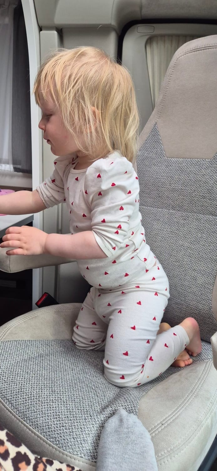Unet olivat ihan luksusta, sillä asuntoauton peti oli 35cm leveämpi mitä oma sänkymme on! Pidimme unirutiinit samanlaisina kuin kotona, ja iltasadun jälkeen uni tuli suhteellisen helposti. Peti oli aika korkealla, joten viritimme yläsängyn tikkaat esteeksi, ettei kuopus keksi lähteä yöllä möyrimään sängystä alas omin päin. Tämä oli onneksi turha huoli, sillä nukuimme koko perhe kuin vauvat.