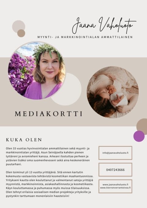 Koulutukseltani olen estenomi eli kosmetiikan raaka-aine asiantuntija ja markkinoinnin osaaja.