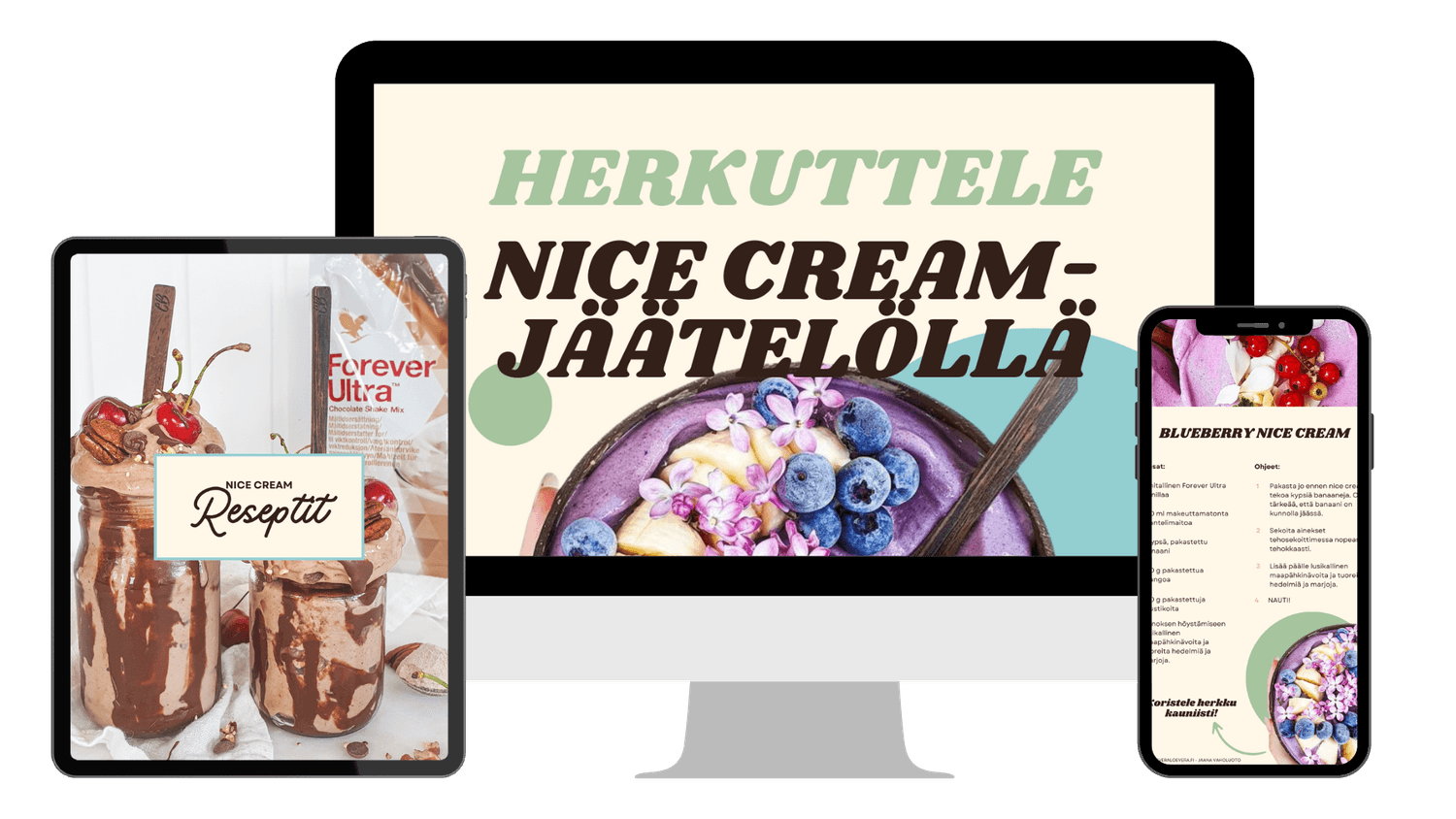 Tämä ilmainen reseptikirja tarjoaa useita herkullisia reseptejä helposti ja nopeasti valmistettaviin terveellisiin jäätelöihin!